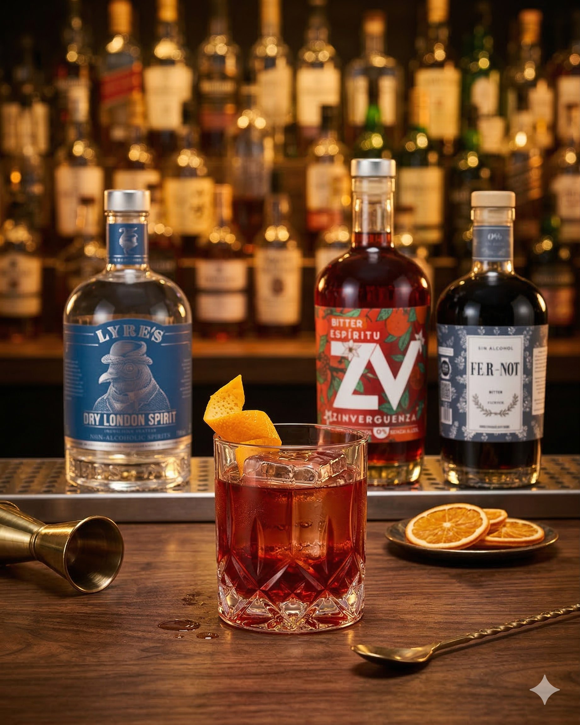 El Negroni tradicional se caracteriza por su perfil amargo, aromático y complejo, con notas botánicas y cítricas que lo convierten en un aperitivo sofisticado y elegante. Este pack ha sido diseñado para recrear esa experiencia utilizando alternativas sin alcohol que mantienen el carácter del cóctel original.